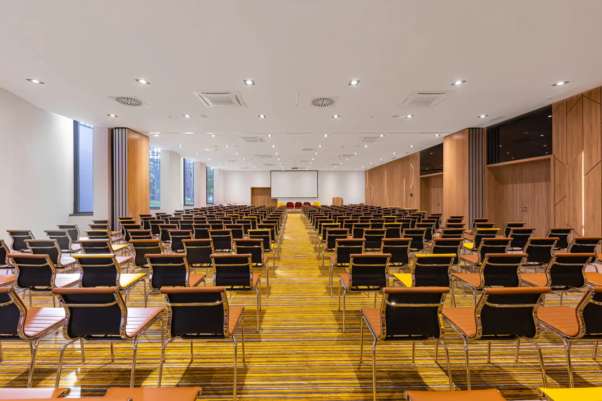 A konferenciaturizmus résztvevőit két nagy, egyenként 252 m²-es plenáris terem várja, amelyek több részre is szekcionálhatók. A termek a Mátra hangulatát idéző neveket viselik: Bükkös, Tölgyes és Juhar terem. Ezek mellett egy 21 fős, exkluzív bőrfoteles előadóterem, valamint az 5. emeleten egy VIP tárgyaló is helyet kapott.