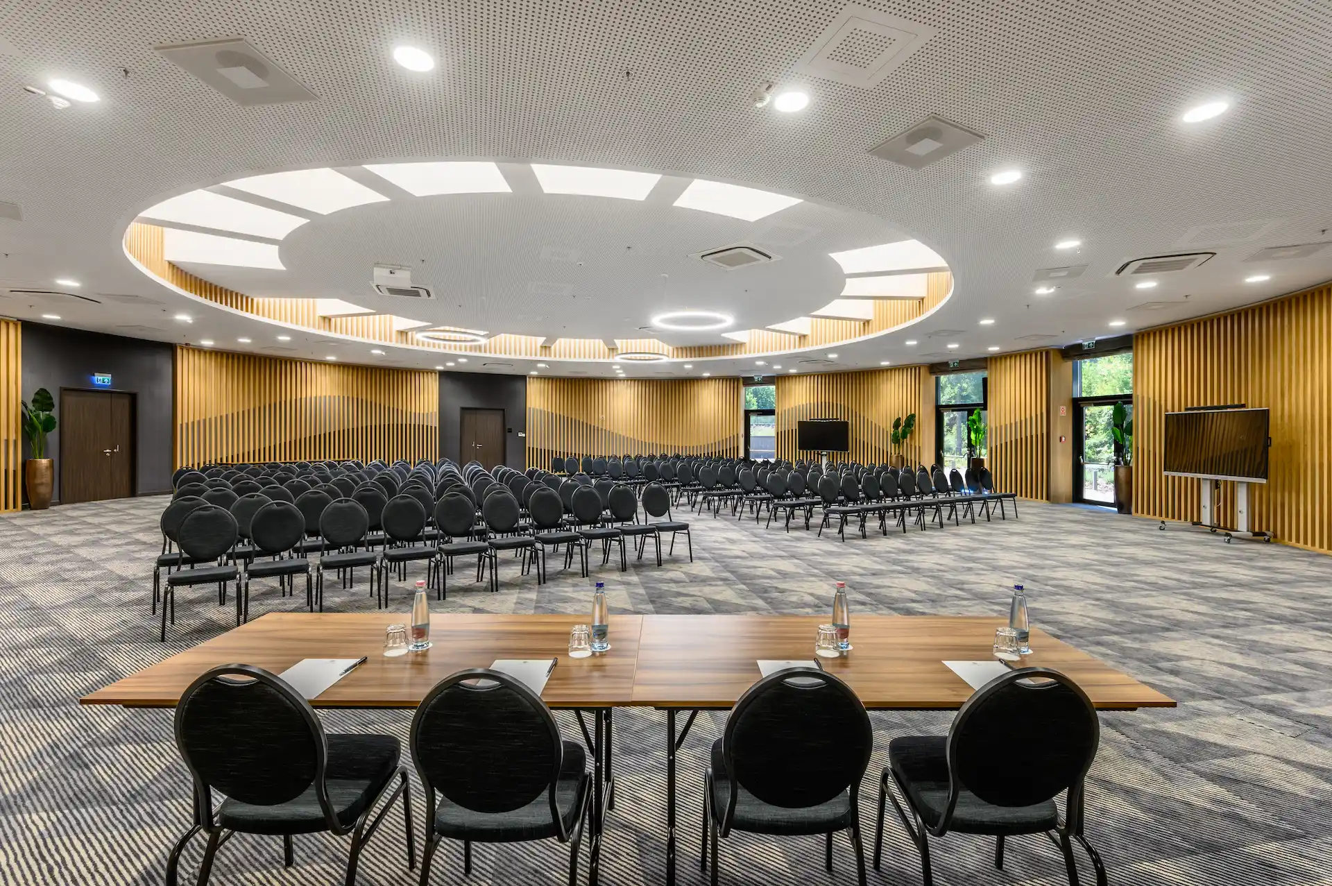 A Grand Hotel Esztergom nemcsak szabadidős vendégek, hanem konferenciák és üzleti rendezvények számára is ideális helyszín. A szállodában több modern, természetes fénnyel megvilágított konferenciaterem áll rendelkezésre, professzionális technikai háttérrel és dedikált rendezvénycsapattal.